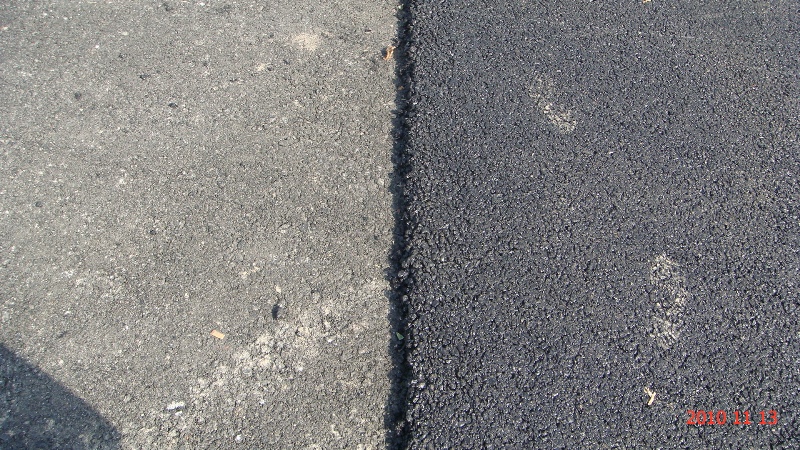 (左邊為巖瀝青混合料中層路面,右邊為其他瀝青路面)