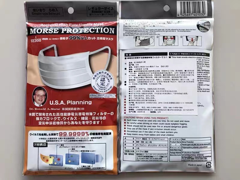 成人款與兒童款莫爾斯保護(hù)口罩(日本ACE株式會(huì)社)